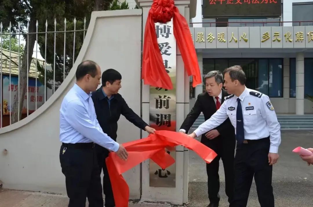 如何將矛盾糾紛化解在起訴前?5月8日上午,博愛(ài)縣委常委、政法委書(shū)記張志強(qiáng),博愛(ài)縣副縣長(zhǎng)、縣公安局局長(zhǎng)張新武,博愛(ài)縣人民法院院長(zhǎng)谷同飛,博愛(ài)縣司法局局長(zhǎng)劉偉為博愛(ài)縣訴前調(diào)解中心揭了牌。