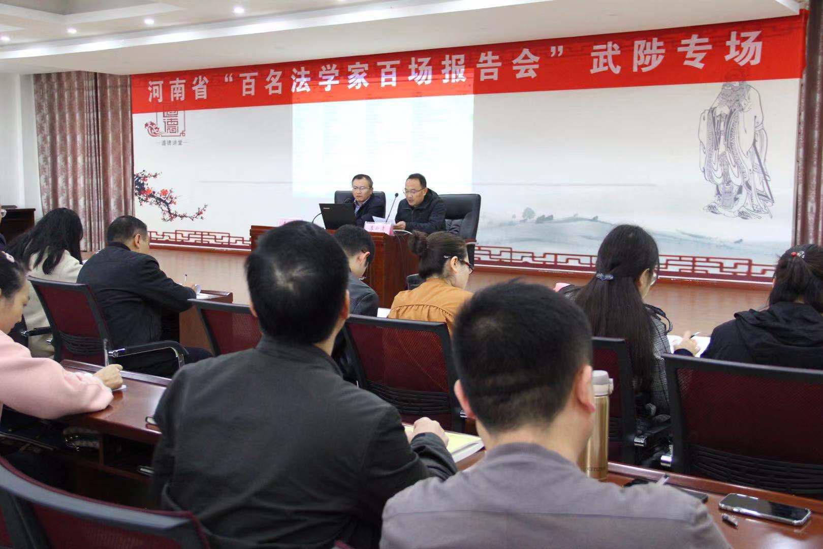 11月4日,武陟縣法學(xué)會(huì)在縣委黨校舉辦了2019年“百名法學(xué)家百場(chǎng)報(bào)告會(huì)”武陟專場(chǎng)??h法學(xué)會(huì)邀請(qǐng)市法治宣講團(tuán)成員、焦作大學(xué)法政學(xué)院副院長(zhǎng)李小五副教授,宣講了主題為“弘揚(yáng)憲法精神 維護(hù)憲法權(quán)威 助力中國(guó)特色社會(huì)主義現(xiàn)代化”的報(bào)告。武陟縣委黨校2019年秋季鄉(xiāng)科級(jí)、中青年干部培訓(xùn)班200余名學(xué)員聆聽了報(bào)告,縣委政法委副書記、縣法學(xué)會(huì)常務(wù)副會(huì)長(zhǎng)李新清主持報(bào)告會(huì)。