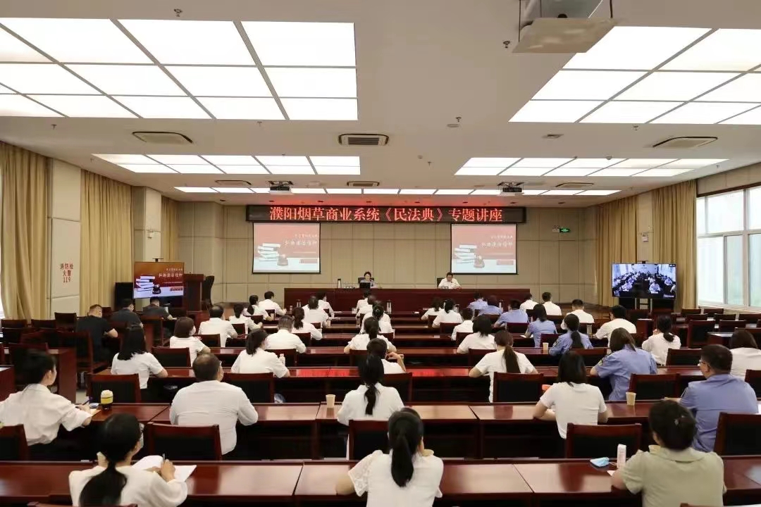 6月21日,濮陽市中級法院黨組書記、院長徐哲應邀到河南省煙草公司濮陽市公司宣講《民法典》。