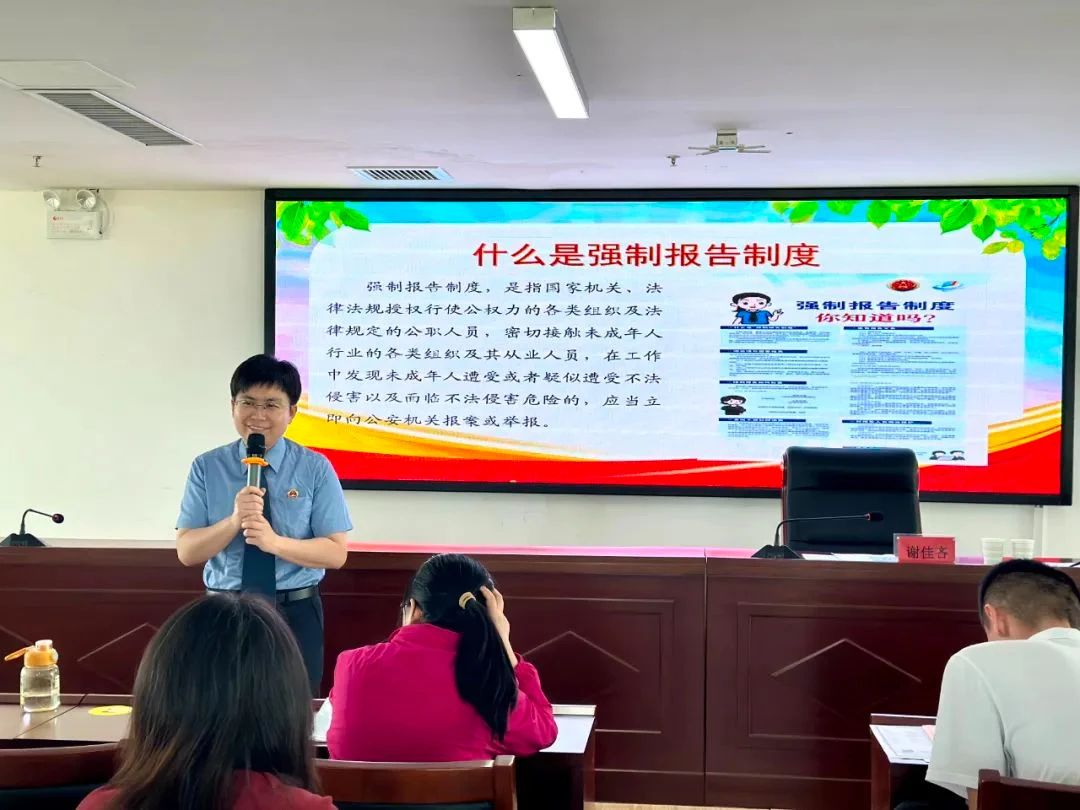 法治課上,謝佳吝以“凝新聚力 育見(jiàn)未來(lái)”為主題,圍繞未成年人檢察工作的職能定位、“一號(hào)檢察建議”、強(qiáng)制報(bào)告制度、入職查詢制度等相關(guān)制度的產(chǎn)生背景及作用意義進(jìn)行深入解讀,引導(dǎo)新入職教師增強(qiáng)法治意識(shí)、責(zé)任意識(shí)、安全意識(shí)。同時(shí),她結(jié)合新修訂的《未成年人保護(hù)法》、《預(yù)防未成年人犯罪法》等相關(guān)法律法規(guī),對(duì)有學(xué)習(xí)困難、不良行為的問(wèn)題學(xué)生教育保護(hù)、對(duì)校園欺凌和校園性侵案件等開(kāi)展分析,講述上述行為給未成年人帶來(lái)的傷害以及預(yù)防該類行為發(fā)生的重要性。