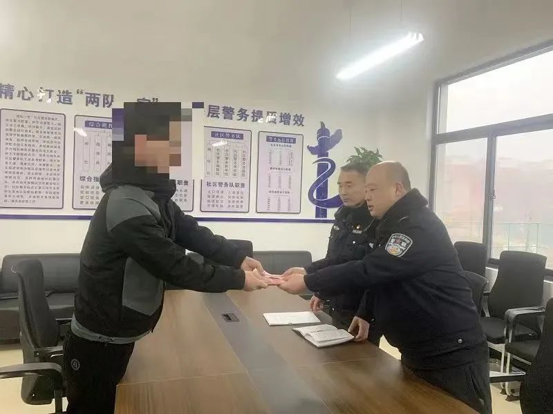 “太感謝你們了,沒想到我的錢還能追回來,咱警察辦事效率高啊”!2月13日,受害人董先生從城關(guān)派出所民警手中領(lǐng)回了丟失的17300元現(xiàn)金,激動地向民警表示感謝。