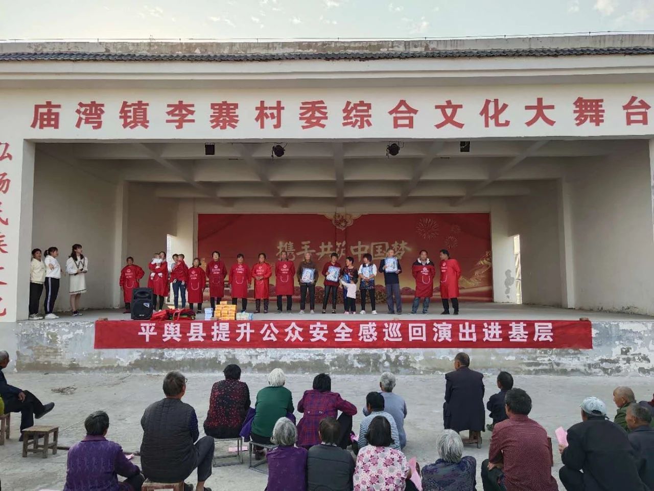 為進一步深化平安平輿建設,營造全民參與平安建設的濃厚氛圍,全力提升群眾安全感和政法機關執(zhí)法滿意度,10月26日,平輿縣委政法委提升公眾安全感文藝巡演走進廟灣鎮(zhèn)李寨村委。