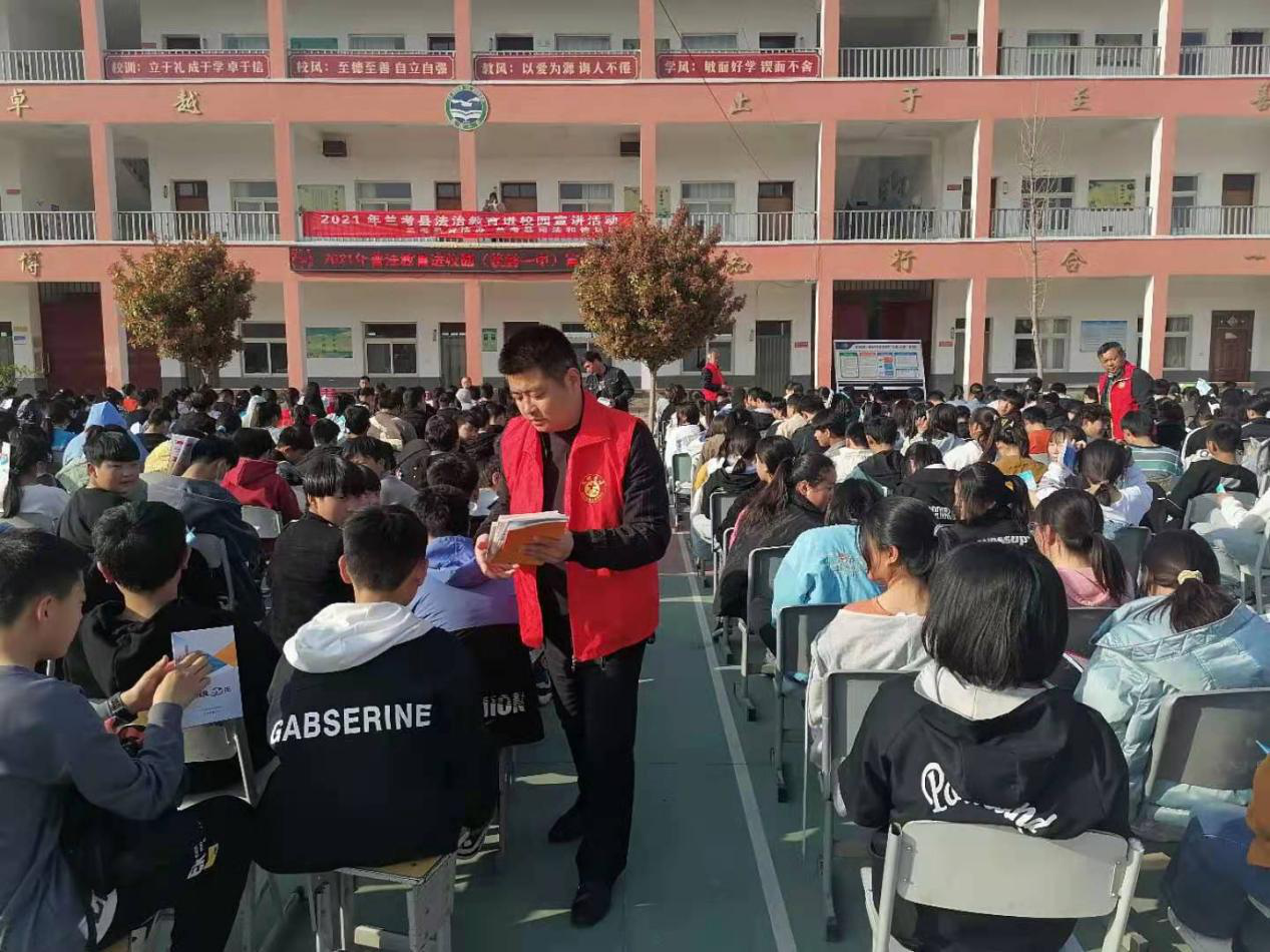 為進一步確保校園安全穩(wěn)定,提高在校學生的安全保護意識和法治意識,全力預防和遏制青少年違法犯罪,10月20日下午,蘭考縣法學會儀封鎮(zhèn)工作站聯(lián)合司法所走進儀封鎮(zhèn)第一初中開展普法進校園活動。