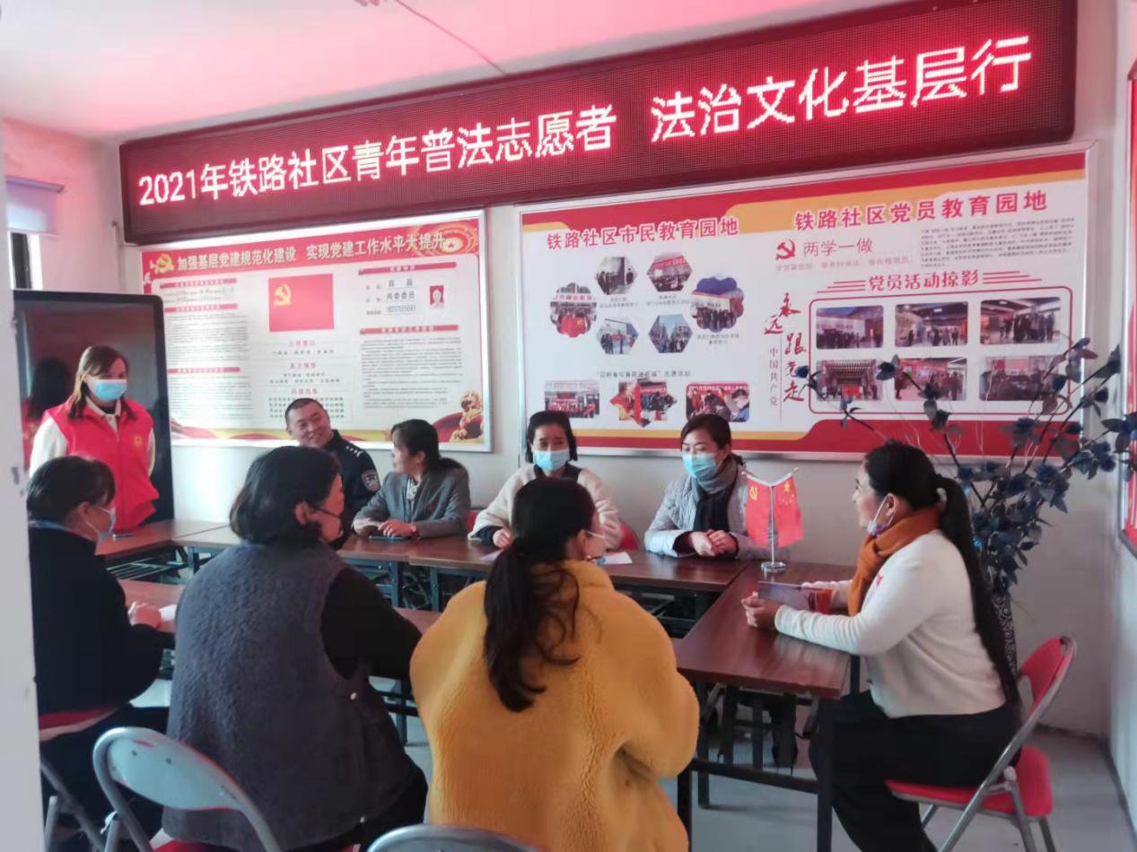 為進(jìn)一步增強人民群眾的法治觀念以及對毒品的防范意識,提高居民尊法、守法、識毒、防毒能力,引導(dǎo)居民自覺做一名奉公守法的好公民,結(jié)合疫情常態(tài)化防控實際,11月5日,禹王臺區(qū)法學(xué)會官坊街道工作站在鐵路社區(qū)開展了“青年普法志愿者 法治文化基層行”普法宣傳活動。