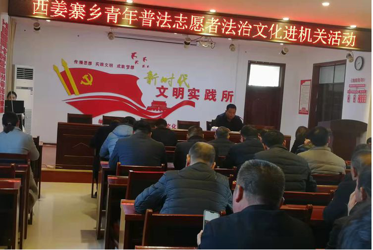 11月19日,祥符區(qū)法學(xué)會(huì)西姜寨鄉(xiāng)工作站開(kāi)展青年普法志愿者法治文化進(jìn)機(jī)關(guān)活動(dòng),會(huì)議由鄉(xiāng)黨委副書(shū)記孔兵主持。會(huì)上孔書(shū)記強(qiáng)調(diào):“開(kāi)展此次活動(dòng)意義重大,往大方面說(shuō)是時(shí)代法治社會(huì)的需要,往貼近我鄉(xiāng)實(shí)際工作的小方面來(lái)說(shuō),也是我鄉(xiāng)今后開(kāi)展法治文化建設(shè)的必不可少的一部分。”
