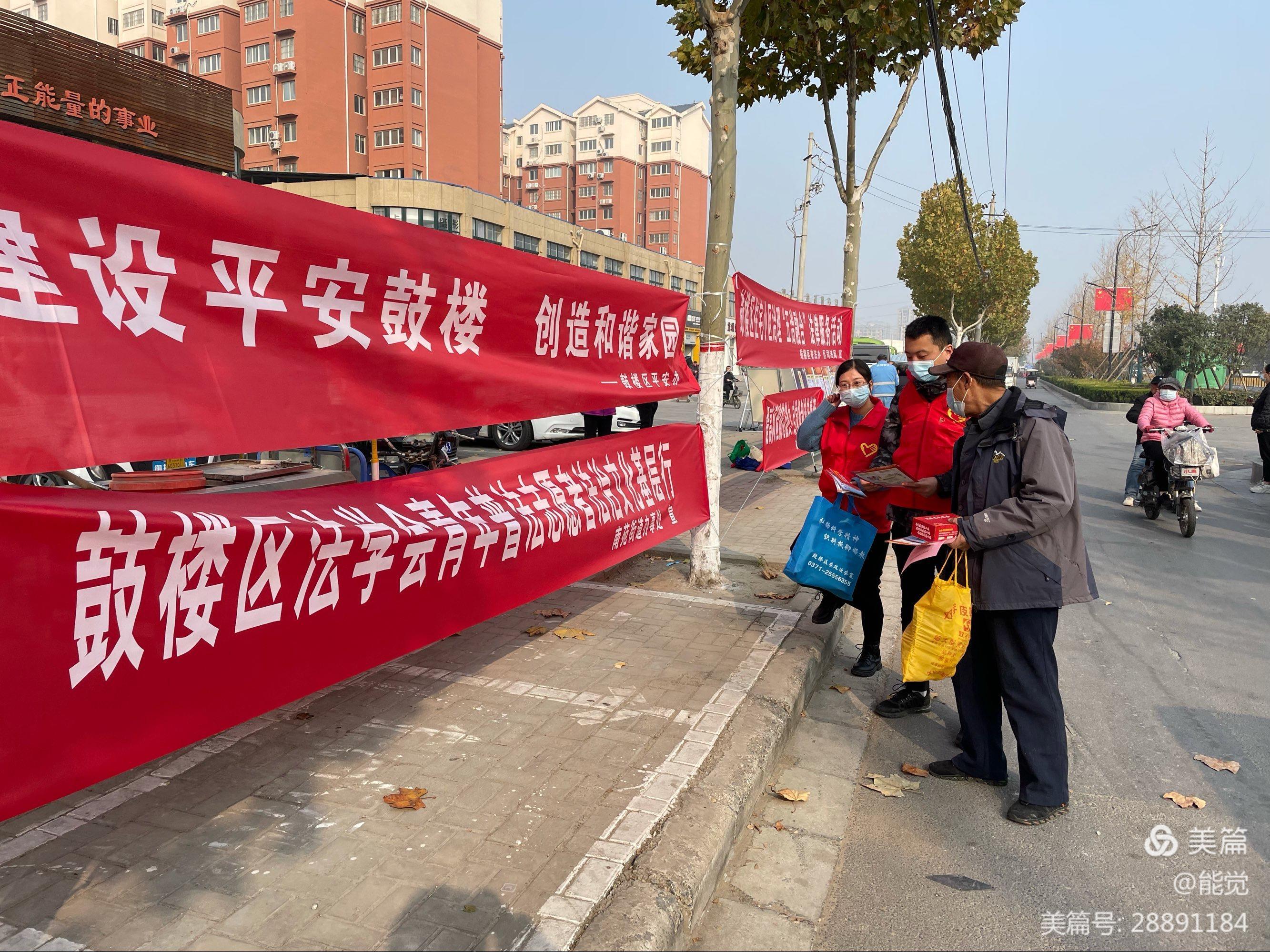 11月19日上午,開封市鼓樓區(qū)法學(xué)會(huì)、區(qū)司法局和南苑辦事處在龍城御苑小區(qū)門口集中開展“青年普法志愿者法治文化基層行”進(jìn)社區(qū)宣傳活動(dòng)。