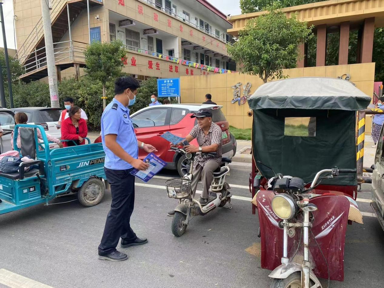 2022年9月20日,開封市示范區(qū)杏花營農(nóng)場綜治辦組織工作人員、網(wǎng)格員在學(xué)生放學(xué)期間利用護(hù)學(xué)崗工作開展普法宣傳活動。