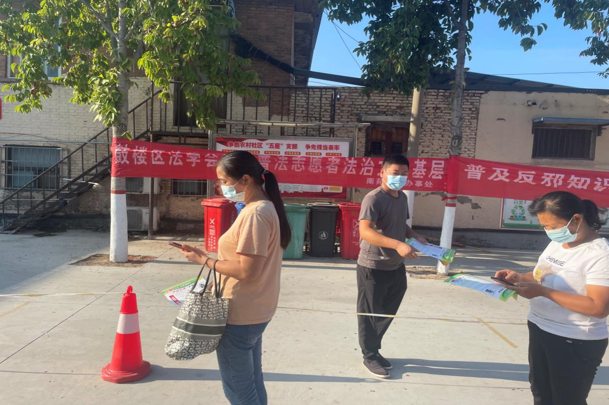 為加強(qiáng)《鼓樓區(qū)法學(xué)會(huì)青年普法志愿者法治文化基層行》的宣傳工作,同時(shí)也為提升轄區(qū)安全感滿意度,2022年9月14日上午,南苑辦事處平安辦結(jié)合劉寺社區(qū)疫情防控核酸檢測(cè)期間集中開展下載反詐宣傳APP、法律服務(wù)進(jìn)卡點(diǎn)宣傳活動(dòng)?;顒?dòng)現(xiàn)場(chǎng),工作人員現(xiàn)場(chǎng)通過懸掛條幅、發(fā)放宣傳單向群眾宣傳平安建設(shè)、法律援助、防范電信詐騙、抵制xj、防范新型毒品等常識(shí),吸引了不少的群眾駐足傾聽。