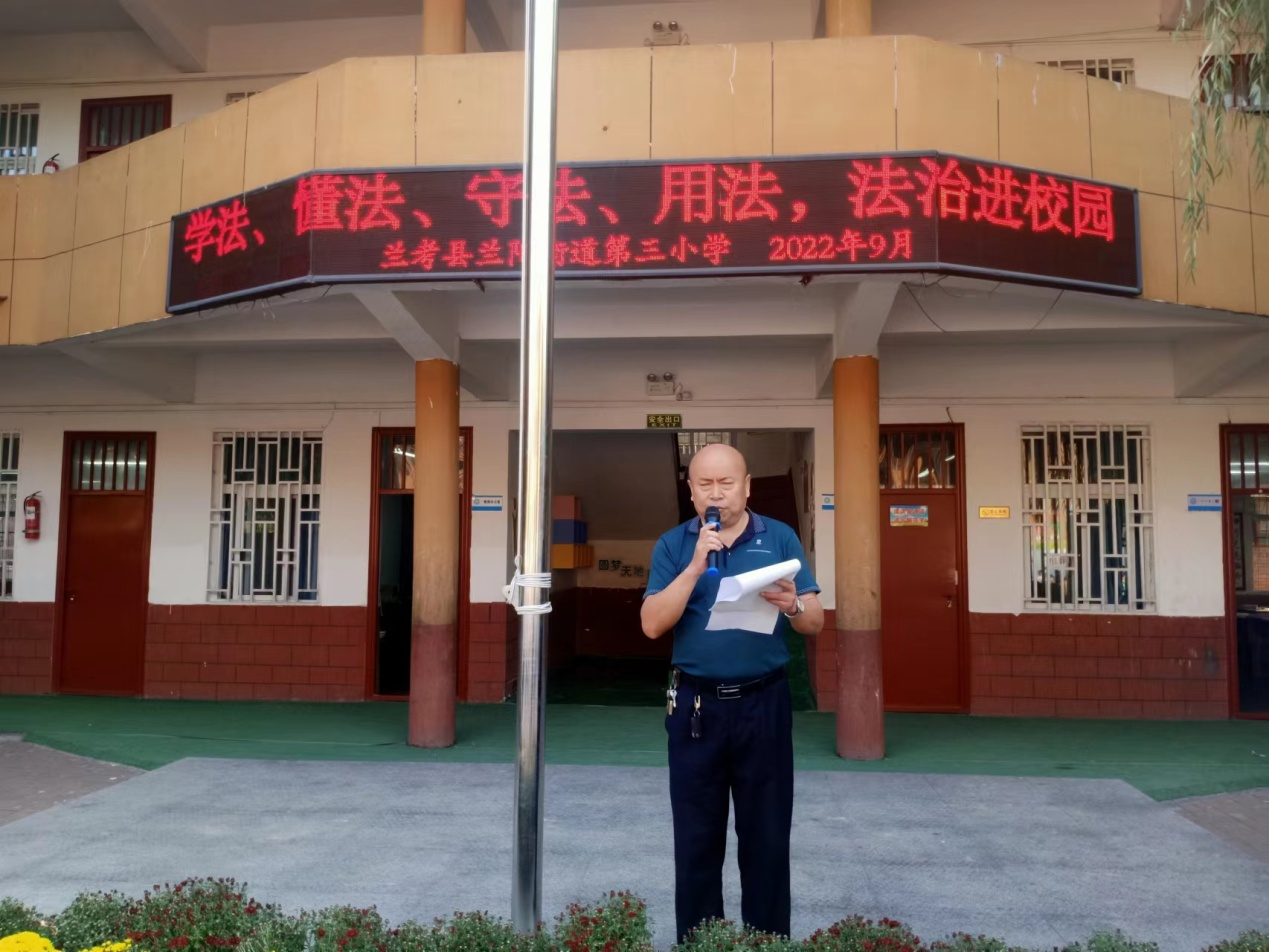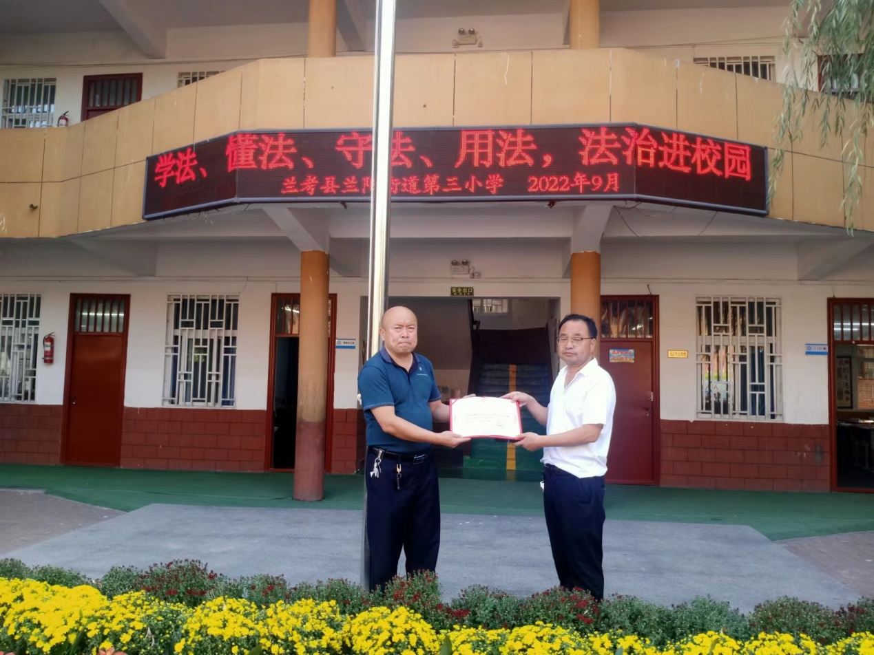 為切實增強青少年的法律意識和自我保護能力,9月29日下午蘭陽街道司法和信訪所魯衛(wèi)平同志到蘭陽街道第三小學上法治課,并積極和同學互動,現(xiàn)場氣氛活躍、生動、詳實的普法內(nèi)容,得到了師生的一致好評,并被聘為法治副校長。