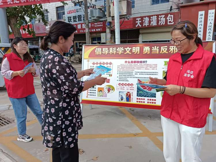 為有效防范抵制邪教向農(nóng)村滲透、助力護(hù)航鞏固拓展脫貧攻堅(jiān)成果同鄉(xiāng)村振興有效銜接工作,深入開展反邪教警示教育,積極營造崇尚科學(xué)、反對(duì)邪教的社會(huì)氛圍,9月13日上午,馮莊鄉(xiāng)法學(xué)會(huì)工作站聯(lián)合司法所、宣傳辦、婦聯(lián)等部門在鄉(xiāng)政府門口開展 “防范邪教宣傳月暨反邪教警示教育進(jìn)鄉(xiāng)村”宣傳活動(dòng)。