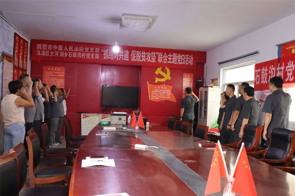 “我志愿加入中國(guó)共產(chǎn)黨,擁護(hù)黨的綱領(lǐng)……”8月14日下午,淇濱區(qū)石鼓溝村村委會(huì)辦公室內(nèi),入黨誓詞的聲音回蕩在村落的上空,一項(xiàng)別樣的支部主題黨日活動(dòng)在這里拉開(kāi)帷幕。鶴壁中院政治部支部、行裝處支部的黨員干警們,來(lái)到結(jié)對(duì)幫扶的石鼓溝村,送上西瓜、方便面、飲用水等慰問(wèn)品,看望慰問(wèn)駐村第一書(shū)記,并與該村的全體黨員“手拉手”,共同開(kāi)展主題黨日活動(dòng)。