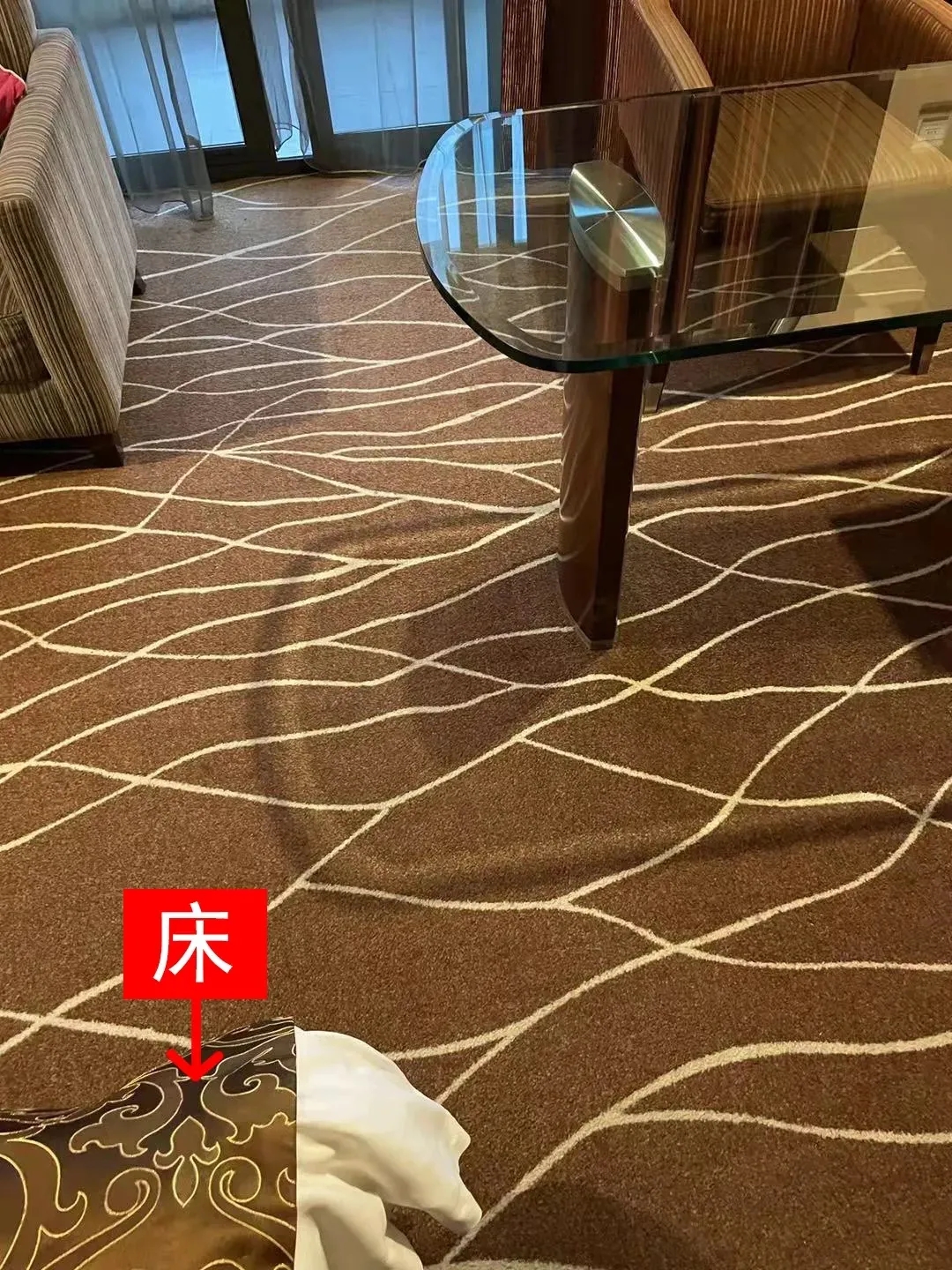 根據(jù)雙方提供的現(xiàn)場照片,并經(jīng)現(xiàn)場勘查,透明玻璃桌有一定厚度,外緣光滑,玻璃下方為深棕色桌腳支撐。酒店客房內(nèi)燈光明亮,夜間視線良好,能夠注意到玻璃桌的存在。透明玻璃桌和床之間間隔較大,不影響正常通行。高某入住客房地面鋪設(shè)地毯,無障礙物,客房內(nèi)行走通暢。