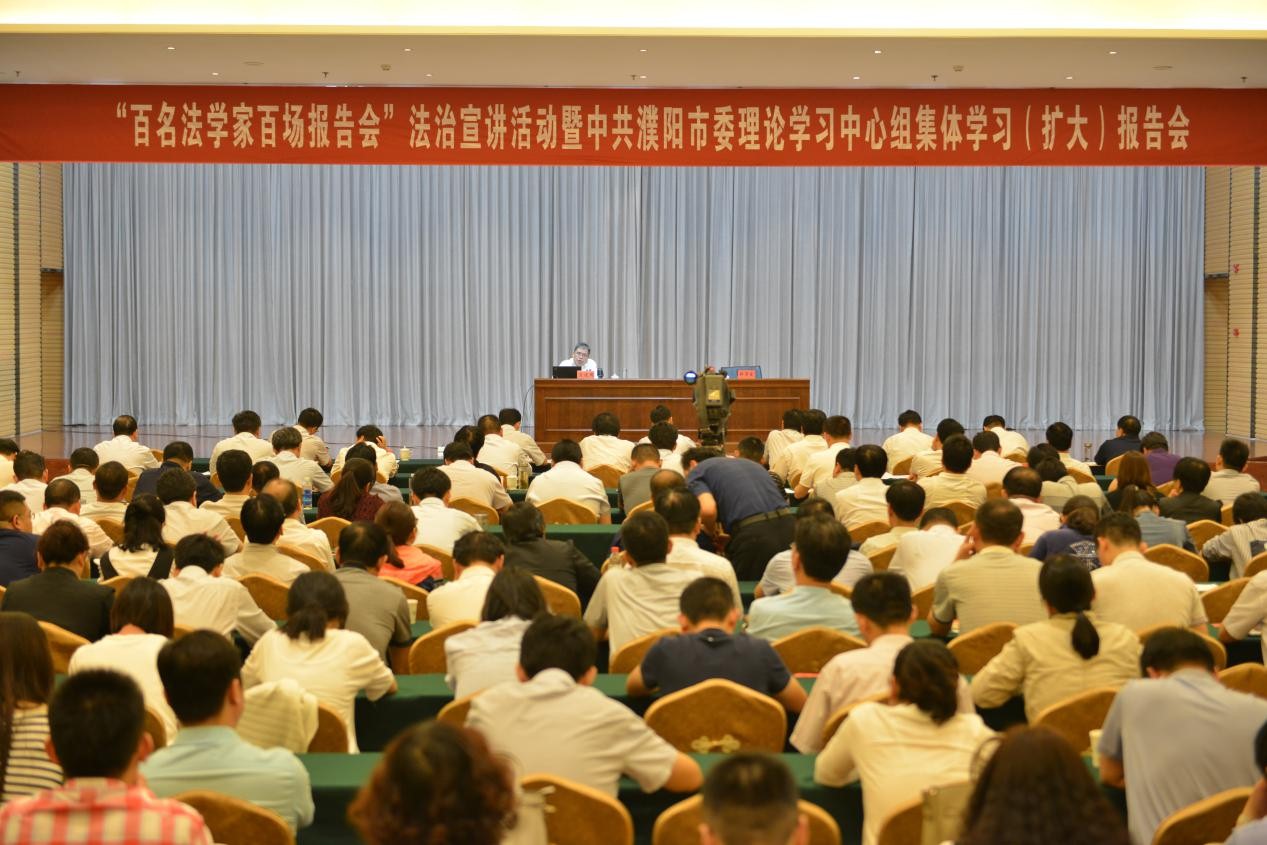 9月26日下午,濮陽市委中心組集體學(xué)習(xí)”雙百“法治宣講(擴(kuò)大)報(bào)告會(huì)在濮陽迎賓館召開,邀請(qǐng)鄭大法學(xué)院王建國教授作專題輔導(dǎo)報(bào)告。