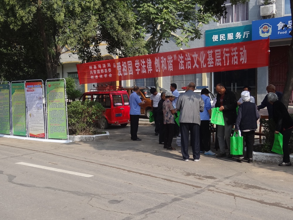 為推動(dòng)法律“進(jìn)機(jī)關(guān)、進(jìn)鄉(xiāng)鎮(zhèn)、進(jìn)社區(qū)、進(jìn)校園、進(jìn)企業(yè)、進(jìn)單位”活動(dòng)深入開展,在全社會(huì)進(jìn)一步形成尊法、學(xué)法、守法、用法的良好氛圍,9月12日,郟縣司法局、共青團(tuán)郟縣委、郟縣法學(xué)會(huì)“愛祖國(guó) 學(xué)法律 創(chuàng)和諧”法治文化基層行宣傳活動(dòng)走進(jìn)姚莊鄉(xiāng)。