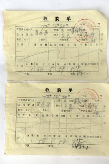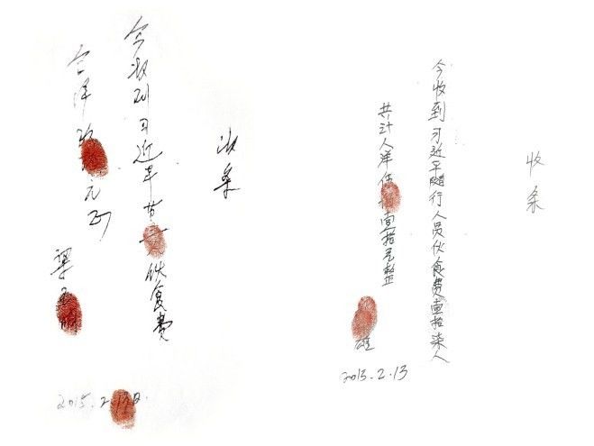 在“砥礪奮進(jìn)的五年”大型成就展中,還有這樣兩張手寫收條: