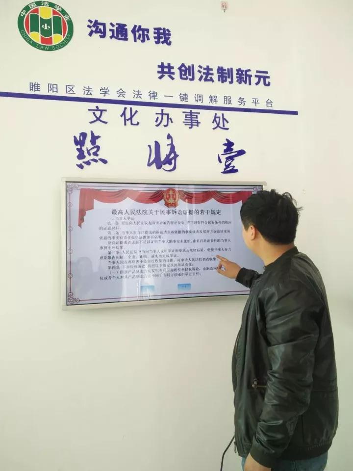 “區(qū)法律服務(wù)站將繼續(xù)緊貼政法中心工作,不斷豐富調(diào)解工作方法,完善服務(wù)體系,將在全區(qū)鄉(xiāng)鎮(zhèn)(辦事處)開通‘點將臺’系統(tǒng),為推進(jìn)法治睢陽建設(shè)作出積極貢獻(xiàn)?!鳖£枀^(qū)法學(xué)會負(fù)責(zé)人介紹說。