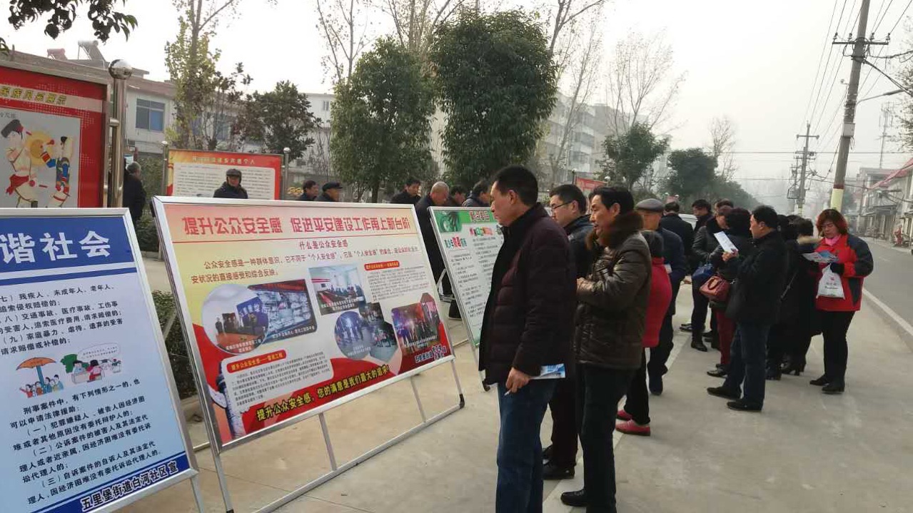 五里堡街道宣傳氛圍濃厚,依托白河社區(qū)法制游園和綜治長廊開展了一次集中宣傳活動,以橫幅、展板、廣播、和發(fā)放畫冊等多種形式開展對反恐防恐、雪亮工程建設(shè)、社會治安防控、禁毒、法律援助、打擊傳銷、國家安全、《憲法》等進(jìn)行宣傳。