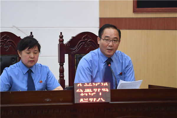 圖為公益訴訟起訴人宣讀民事公益訴訟起訴書。楊洋攝