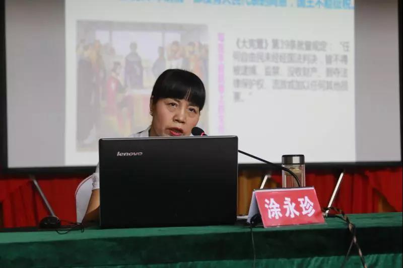 輔導(dǎo)報告會上,河南省委黨校經(jīng)濟法教研室主任、校學(xué)術(shù)委員會委員、研究生導(dǎo)師、兼任河南省經(jīng)濟法學(xué)會副會長、河南省法官檢察官遴選委員會委員、河南省公務(wù)員培訓(xùn)師資庫專家教師、河南省法學(xué)會智庫專家、河南省紀(jì)委特邀研究員涂永珍教授緊扣《堅持和發(fā)展中國特色社會主義的憲法保障——憲法修正案解讀》宣講主題,圍繞憲法修正背景、原則、內(nèi)容、意義做了精彩輔導(dǎo)報告,涂永珍教授報告過程中展現(xiàn)出的嚴(yán)謹(jǐn)法治思維和精深專業(yè)素養(yǎng)深受與會人員的一致好評。