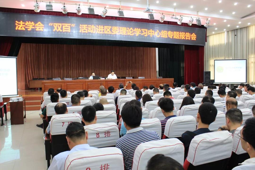 新鄉(xiāng)市牧野區(qū)四大班子理論學習中心組全體成員,各鎮(zhèn)(辦)、區(qū)直各單位科級以上干部,牧野區(qū)委政法委全體人員、法學會會員、律師等500人參加報告會。