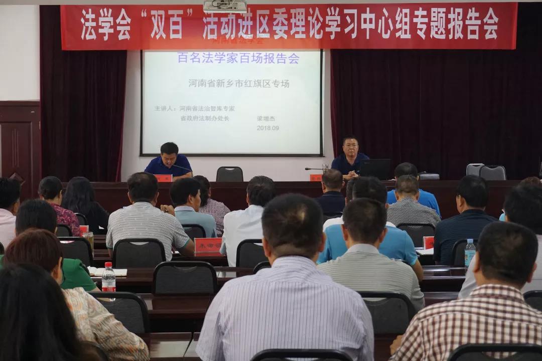 9月14日下午,紅旗區(qū)舉辦法學(xué)會“雙百”活動進(jìn)區(qū)委理論學(xué)習(xí)中心組專題報(bào)告會,省政府法制辦處長梁增杰應(yīng)邀以“深入學(xué)習(xí)十九大精神加快建設(shè)法治政府”為主題做了輔導(dǎo)報(bào)告。報(bào)告會由區(qū)委常委、區(qū)委辦主任周霖同志主持。