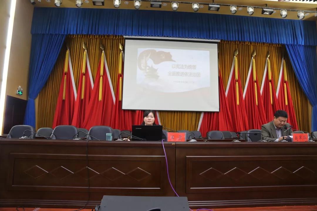 全面貫徹黨的十九大和習(xí)近平新時代中國特色社會主義思想,引導(dǎo)全縣黨員領(lǐng)導(dǎo)干部自覺增強堅持依憲治國、依憲執(zhí)政的觀念,在全社會形成“尊崇憲法,學(xué)習(xí)憲法,維護憲法,運用憲法”的濃厚法治氛圍。11月1日下午,淮濱縣召開“百名法學(xué)家百場報告會”縣委理論學(xué)習(xí)中心組(擴大)專題輔導(dǎo)報告會,由淮濱縣法學(xué)會牽頭,邀請信陽市委黨校法學(xué)教研部主任、副教授王霞作題為《以憲法為統(tǒng)領(lǐng)全面推進依法治國》的法治專題講座。會議由淮濱縣委常委、縣委辦主任趙軍華主持。
