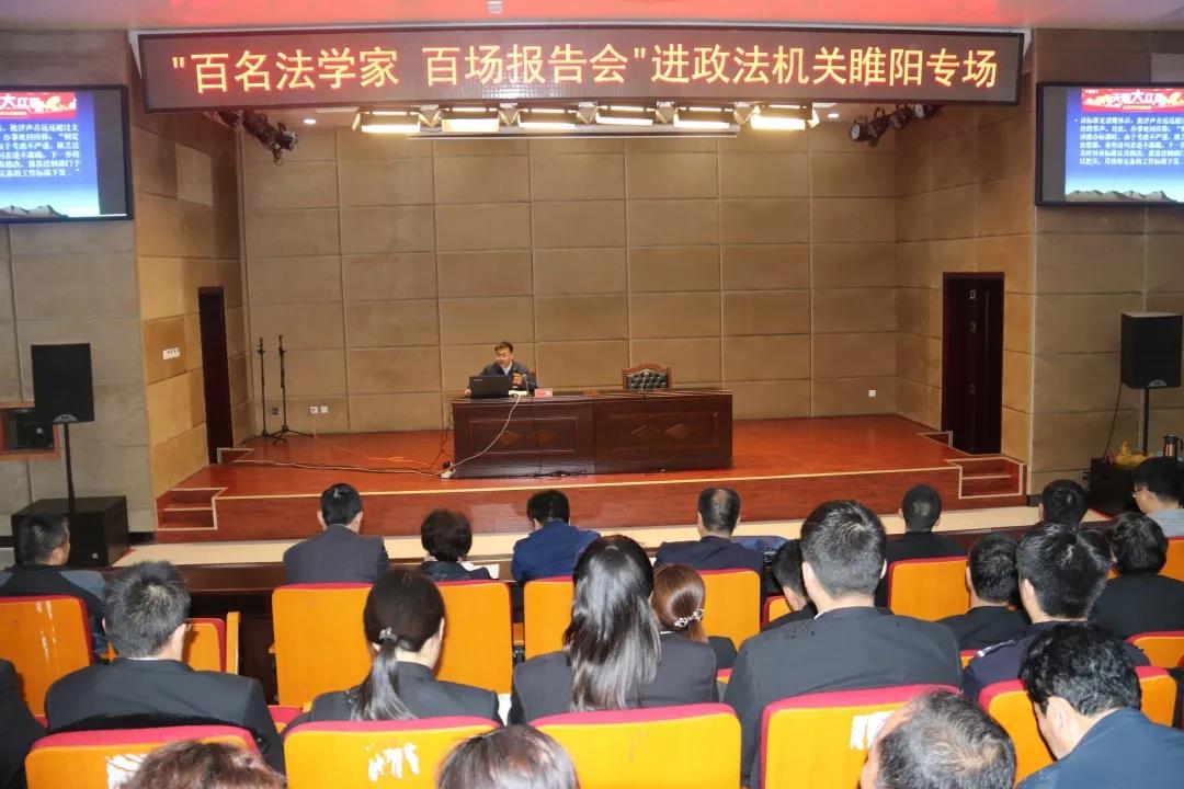 11月6日,商丘市睢陽(yáng)區(qū)法學(xué)會(huì)在工人文化宮舉辦“百名法學(xué)家百場(chǎng)報(bào)告會(huì)”進(jìn)政法機(jī)關(guān)專場(chǎng)法治講座,睢陽(yáng)區(qū)政法機(jī)關(guān)中層以上領(lǐng)導(dǎo)200多人聆聽(tīng)了報(bào)告。報(bào)告會(huì)由商丘市睢陽(yáng)區(qū)政法委常務(wù)副書(shū)記趙學(xué)斌主持。