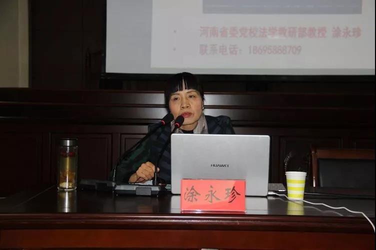 2018年11月6日,按照省委、市委政法委和省、市法學(xué)會的要求,召陵區(qū)法學(xué)會決定舉辦河南省“百名法學(xué)家百場報告會暨憲法專題宣講會”召陵專場,特邀請了省委黨校涂永珍教授到召陵授課。