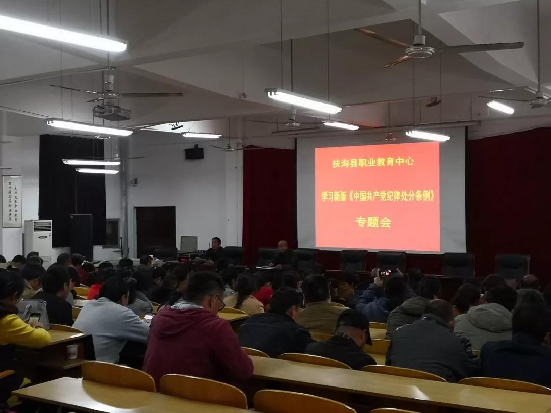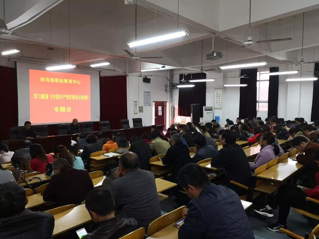 2018年11月12日,扶溝縣紀(jì)律檢查委員會、扶溝縣監(jiān)察委員會、扶溝縣法學(xué)會、扶溝縣職業(yè)教育中心開展普法教育活動專題會,集中學(xué)習(xí)新版《中國共產(chǎn)黨紀(jì)律處分條例》。
