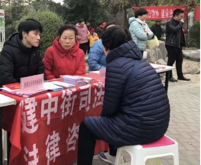 演出現(xiàn)場(chǎng)設(shè)置了法律咨詢臺(tái),二七區(qū)依法治區(qū)辦、建中街司法所工作人員向居民散發(fā)憲法宣傳單頁,同時(shí),河南沃原律師事務(wù)所張俊良律師還熱情解答了居民的法律咨詢,獲得了居民們的好評(píng)?;顒?dòng)最后在歌曲《讓十九大精神放光芒》中落下了帷幕。
