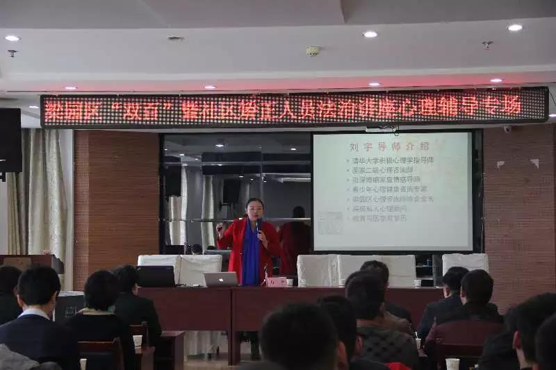 此次講座特邀請商丘市梁園區(qū)心理咨詢師協(xié)會會長、國家二級心理咨詢師劉宇主講,對全區(qū)百余名社區(qū)矯正人員進(jìn)行心理健康教育,同時邀請河南向東律師事務(wù)所律師李鋼對社區(qū)矯正服刑人員進(jìn)行法治教育。劉宇導(dǎo)師從心理學(xué)的基本概念、心理健康常識入手,以淺顯易懂的案例,引導(dǎo)社區(qū)矯正人員樹立心理健康理念,講解了心理健康教育的重要作用和不同管理階段社區(qū)矯正人員的心理問題、培養(yǎng)健康心理的方法。隨后,李鋼律師就中國傳統(tǒng)文化中的法治因素結(jié)合實際案例進(jìn)行了深入淺出的講解。