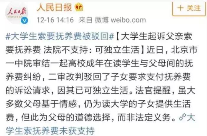 2.已滿18周歲在校大學(xué)生已經(jīng)可以獨(dú)立生活,父母不再有支付撫養(yǎng)費(fèi)的法定義務(wù)——小箏訴倪某撫養(yǎng)費(fèi)糾紛案