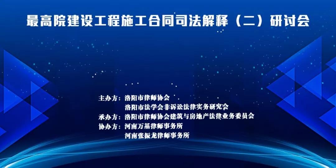 2019年1月18日,由洛陽市律師協(xié)會、洛陽市法學(xué)會非訴訟法律實(shí)務(wù)研究會主辦,洛陽市律師協(xié)會建筑與房地產(chǎn)法律業(yè)務(wù)委員會承辦,河南萬基律師事務(wù)所、河南張振龍律師事務(wù)所協(xié)辦的《最高人民法院關(guān)于審理建設(shè)工程施工合同糾紛案件適用法律若干問題的解釋(二)》研討會在洛陽舉行。