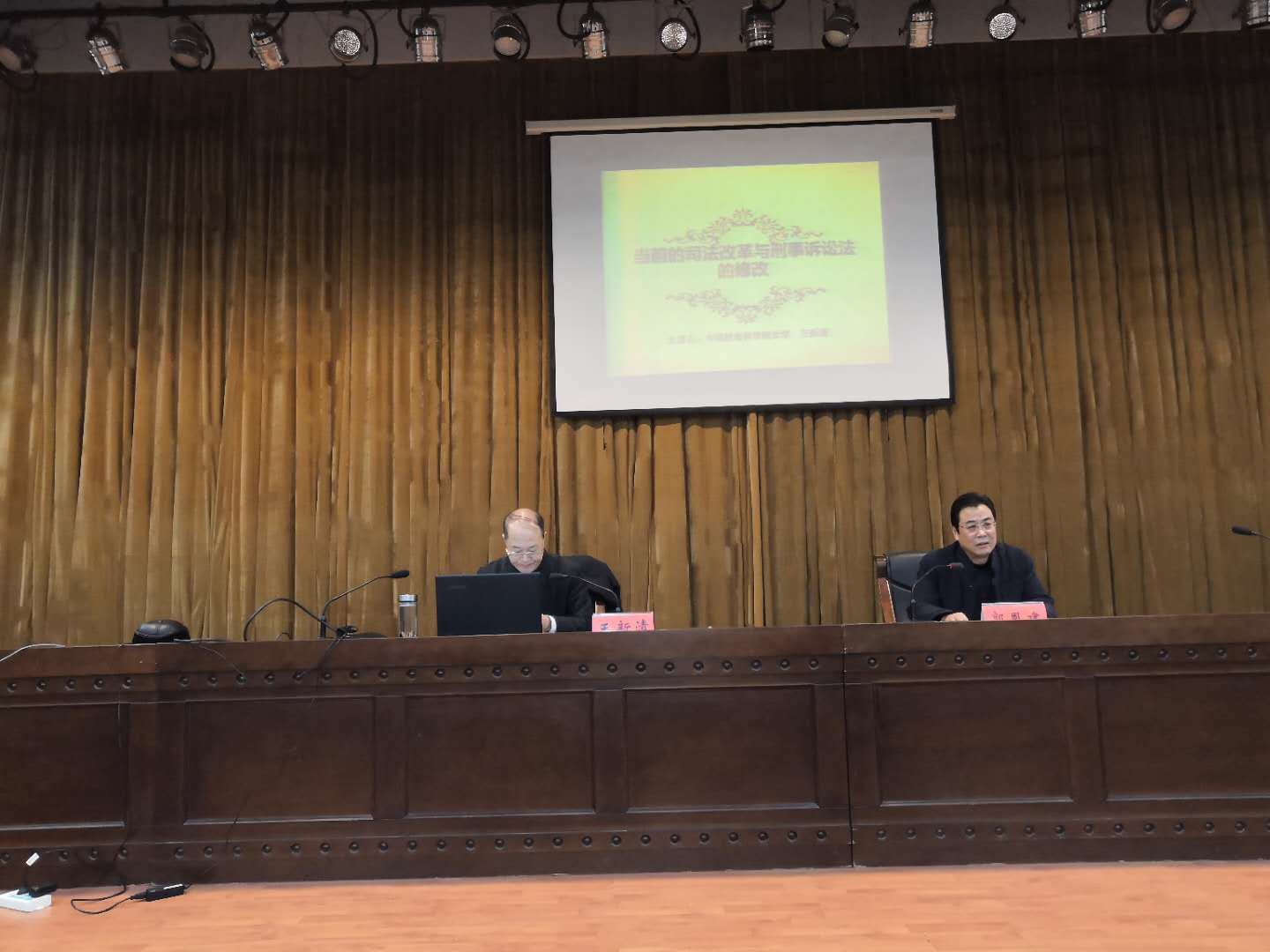 25日上午,王新清教授圍繞“當(dāng)前的司法改革與刑事訴訟法的修改”課題,從①司法改革的階段與類型;②當(dāng)前司法改革的基本方法;③2018年刑事訴訟修改的基本內(nèi)容;④認(rèn)罪認(rèn)罰從寬問題;⑤缺席審判程序5個(gè)方面,結(jié)合自己的研究成果,通過全面詳實(shí)的資料,具體生動的案例,讓我們政法干警受到了一次高層次、高水平、高質(zhì)量的專業(yè)性教育。報(bào)告會由新野縣縣委常委、政法委書記郭恩建同志主持,縣委政法委機(jī)關(guān)、法、檢、公、司領(lǐng)導(dǎo)同志和全體干警聆聽了報(bào)告。報(bào)告會議以后,郭恩建同志強(qiáng)調(diào),一是要堅(jiān)持不懈開展好“雙百”活動;二是要深刻領(lǐng)會講座精髓,做到融全貫通、學(xué)以致用;三是要積極應(yīng)用學(xué)習(xí)成果,圍繞司法體制改革、全面落實(shí)司法責(zé)任制、建設(shè)過硬政法隊(duì)伍,高質(zhì)量推動政法事業(yè)新發(fā)展,持續(xù)提升全面依法治縣水平,為建設(shè)“三個(gè)新野”創(chuàng)優(yōu)環(huán)境,保駕護(hù)航。