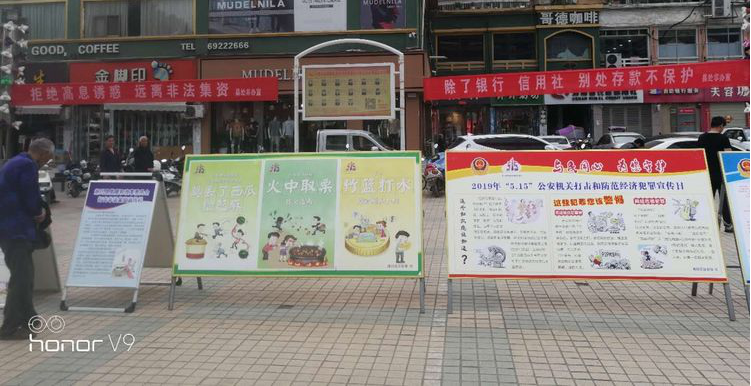 其中社會宣傳,在人民路沿街及中心廣場,懸掛條幅16副,擺放宣傳展板38個。當場發(fā)放《致廣大人民群眾謹防非法集資的一封信》、《防范非法集資八條忠告》、《存款請到合法金融機構(gòu)辦理》、《保護自我、遠離傳銷》等宣傳資料3000余份。