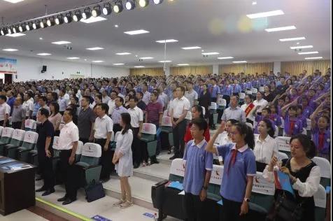 河南省教育廳副巡視員王學(xué)進(jìn)宣布河南省第四屆學(xué)生“學(xué)憲法講憲法”活動(dòng)正式啟動(dòng)。啟動(dòng)儀式上,全體人員奏唱國(guó)歌,全體師生一起唱響憲法歌曲——《憲法伴我們成長(zhǎng)》。