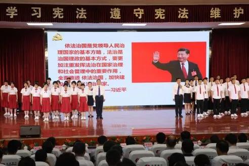 6月5日,第四屆全國(guó)學(xué)生“學(xué)憲法講憲法”活動(dòng)河南省啟動(dòng)儀式在新鄉(xiāng)市育才小學(xué)明德校區(qū)正式啟動(dòng)。教育部政策法規(guī)司巡視員王家勤、河南省司法廳副廳長(zhǎng)魯建學(xué)、省檢察院副巡視員劉秋香、團(tuán)省委副書記王篤波、省教育廳副巡視員王學(xué)進(jìn)、省法學(xué)會(huì)副會(huì)長(zhǎng)謝德安、新鄉(xiāng)市副市長(zhǎng)王占波等出席本次活動(dòng)。新鄉(xiāng)市中小學(xué)學(xué)生代表800余人在現(xiàn)場(chǎng)參加活動(dòng)。