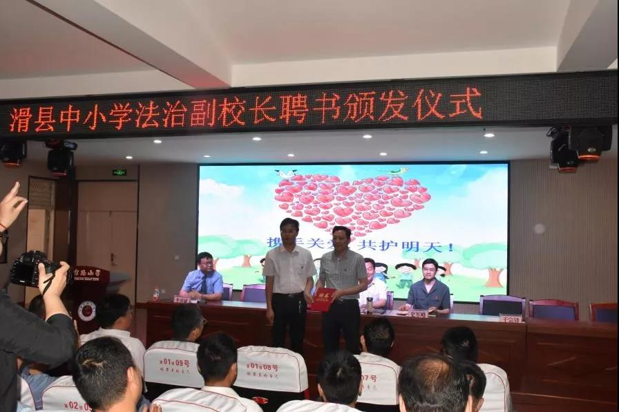 近日,滑縣法學會聯(lián)合縣委全面依法治縣委員會辦公室、縣禁毒委、縣教育局在城關鎮(zhèn)滑臺路小學舉行中小學法治副校長選聘儀式暨青年普法志愿者法律進校園活動。縣政協(xié)黨組副書記、副主席段其東,縣法院院長史軍峰、縣檢察院檢察長陳敏、縣司法局局長于宗鐸、滑縣法學會會員單位部分同志及城區(qū)各中小學校校長和法治副校長等參加了活動。