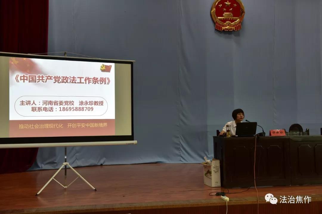 7月16日,河南省“百名法學家百場報告會”沁陽專場在沁陽市人民法院審判大廳舉行,省委黨校教授、經(jīng)濟法教研室主任涂永珍,應邀作了學習貫徹《中國共產(chǎn)黨政法工作條例》專題報告。沁陽市委常委、政法委書記、法學會會長是明友出席報告會,市委政法委副書記、法學會常務副會長朱華主持報告會。全市政法部門班子成員、中層干部,13個鄉(xiāng)鎮(zhèn)(辦事處)綜治中心干部職工共計350人聆聽了報告。