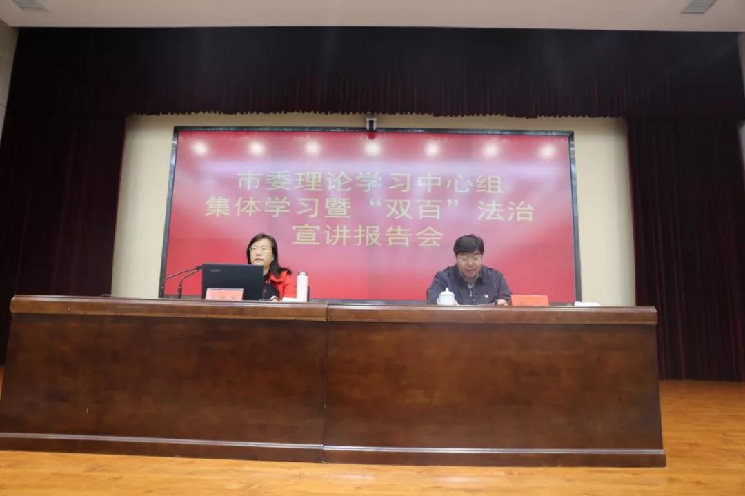 10月15日上午,鶴壁市委理論學(xué)習(xí)中心組集體(擴(kuò)大)學(xué)習(xí)暨“雙百”法治宣講報(bào)告會(huì)在市人民會(huì)堂三樓視頻會(huì)議室召開(kāi)。市委書(shū)記馬富國(guó),市委副書(shū)記、市長(zhǎng)郭浩,市委副書(shū)記張然,李軍、路培果、馮芳喜、洪利民、王澤華、田開(kāi)勝等市委理論學(xué)習(xí)中心組成員和其他在鶴的副市級(jí)以上領(lǐng)導(dǎo)同志參加。張然主持。