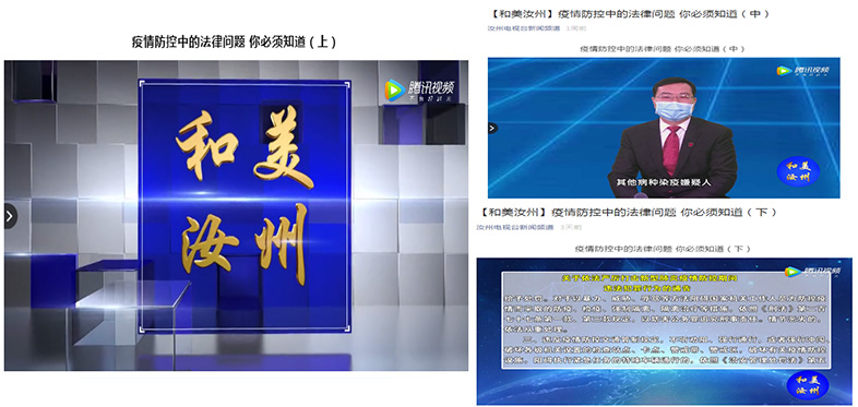 為引導全市廣大人民群眾深入了解疫情防控工作有關的法律知識,促進疫情防控工作依法有序開展,由汝州市法學會指導,聯(lián)合汝州電視臺新聞綜合頻道法治專欄《和美汝州》,制作播出專題節(jié)目《疫情防控工作法律問題,你必須知道》。