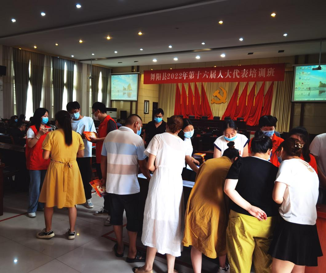 7月27日,舞陽縣法學(xué)會(huì)組織“沙澧法治使者”青年普法志愿者走進(jìn)2022年舞陽縣第十六屆人大代表培訓(xùn)班會(huì)場(chǎng),為208名人大代表送上憲法、民法典、法律援助、八五普法系列書籍,用實(shí)際行動(dòng)服務(wù)全縣人大代表培訓(xùn)工作。