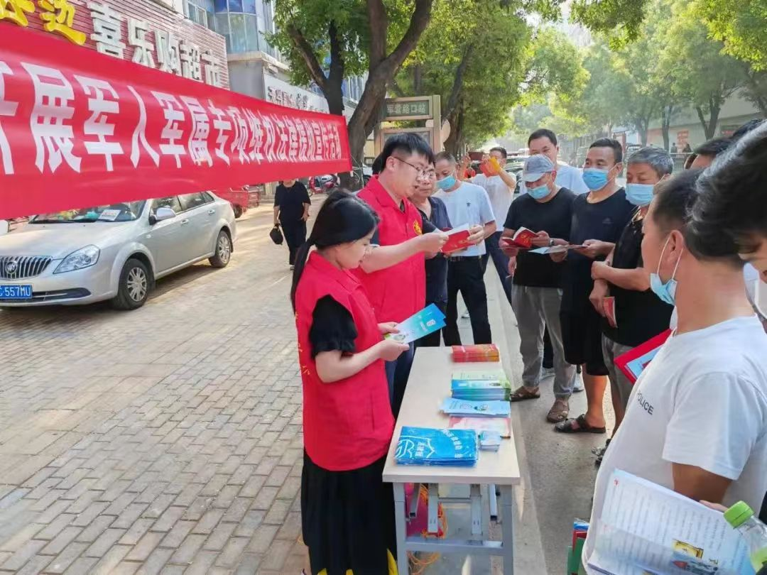 在“八一”建軍節(jié)來(lái)臨之際,新安縣組織青年普法志愿者開(kāi)展軍人軍屬專(zhuān)項(xiàng)維權(quán)法律援助宣傳活動(dòng)。
