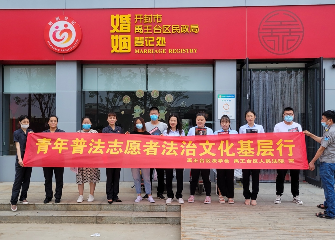 為進一步宣傳民法典,讓法治文化扎根基層,7月27日,開封市禹王臺區(qū)法學會人民法院工作站的陳婧、劉海波、孔蘭蘭等青年普法志愿者走進區(qū)民政局,向婚姻登記處的工作人員宣講民法典婚姻家庭編中的亮點新規(guī)。
