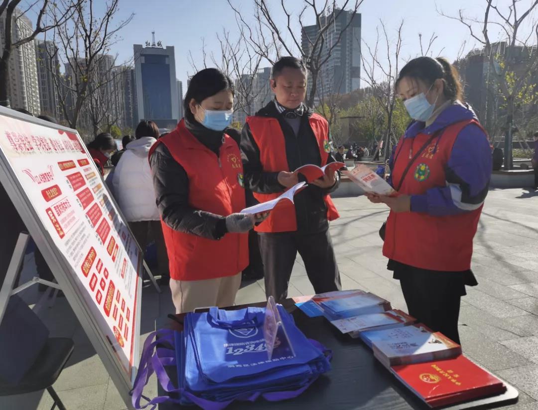 活動現(xiàn)場,各單位印發(fā)了民法典、憲法等宣傳手冊,并制作了手提袋和圍裙等宣傳物品向參與群眾發(fā)放,群眾的參與度和滿意度非常高漲。在洛陽市澗西區(qū)法學(xué)會的展板前,停留許多群眾,原來,青年普法志愿者魏志剛律師正在向群眾提供鄰里糾紛、婚姻家庭糾紛,債權(quán)債務(wù)等法律咨詢服務(wù)。