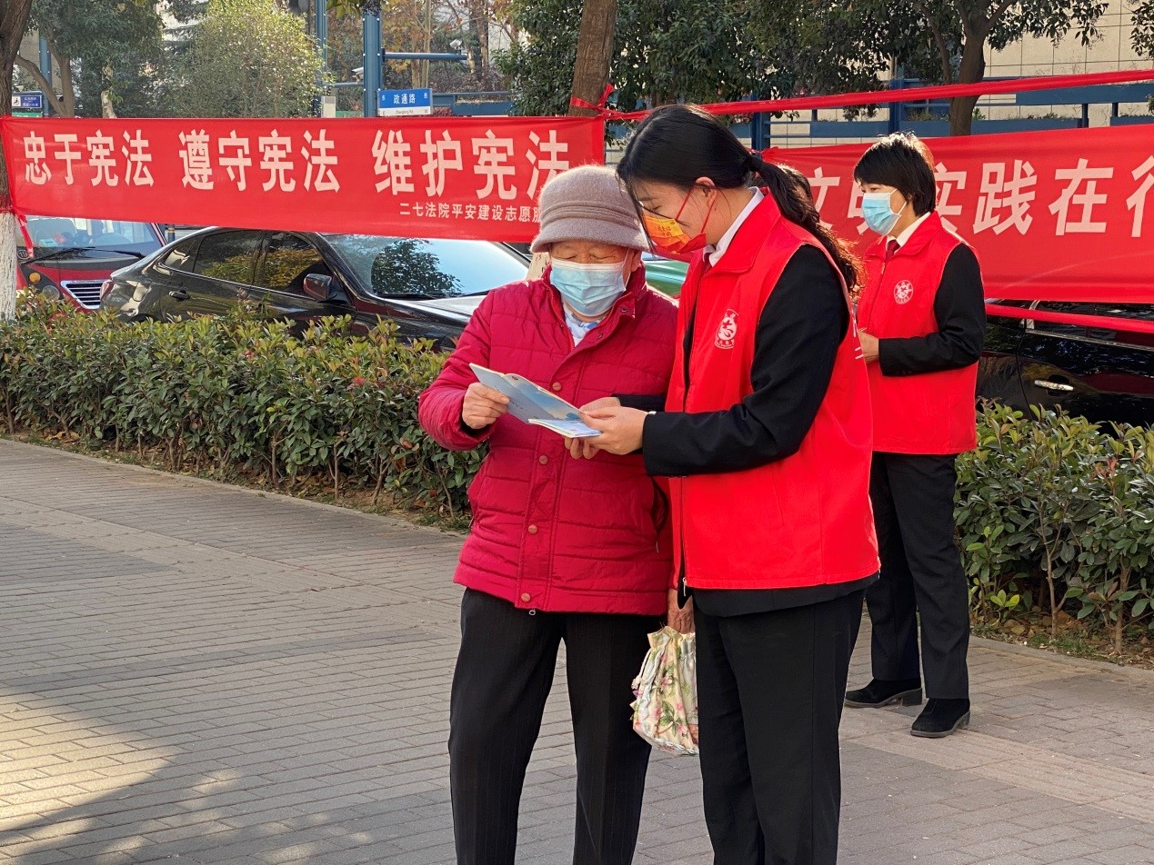 12月1日二七區(qū)法學(xué)會(huì)通知各鎮(zhèn)(辦)及政法各部門積極組織“法律進(jìn)社區(qū)”“法律進(jìn)學(xué)?!薄胺蛇M(jìn)企業(yè)”宣傳活動(dòng),活動(dòng)現(xiàn)場(chǎng)志愿者積極認(rèn)真地給群眾講解“12.4”國(guó)家憲法日的由來和《憲法》相關(guān)知識(shí),并宣講了與居民日常生活息息相關(guān)的法律、法規(guī)知識(shí),現(xiàn)場(chǎng)有序排隊(duì)咨詢。截止目前《憲法》的普法宣傳已經(jīng)開展了20余場(chǎng),發(fā)放法治宣傳頁(yè)1000余張,宣傳手袋100余個(gè),受教育群眾達(dá)5000余人。