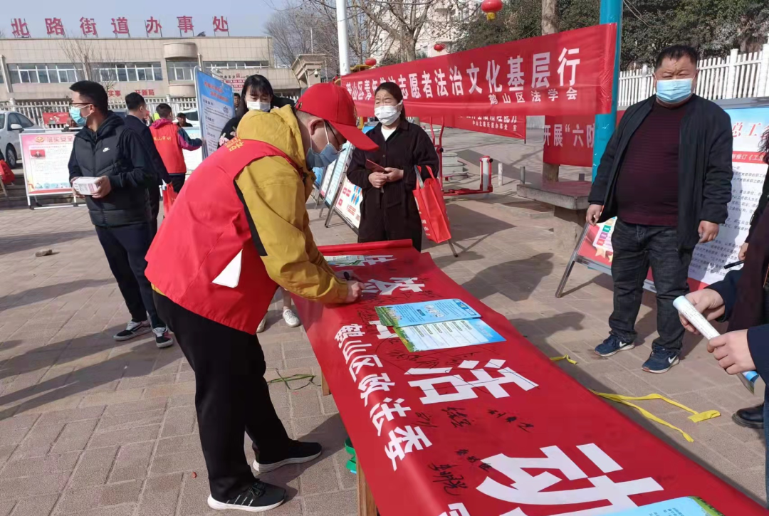 3月9日,陽光和煦,春風(fēng)送暖,鶴壁市鶴山區(qū)法學(xué)會聯(lián)合區(qū)委政法委等40余家單位,組織20名青年普法志愿者在中北小廣場開展平安建設(shè)普法宣傳活動。