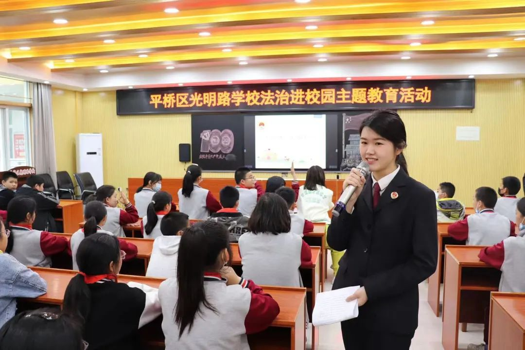 4月29日,信陽市平橋區(qū)法學(xué)會聯(lián)合區(qū)檢察院法治宣講團走進光明路小學(xué),為120余名師生送上一堂生動的法治課。