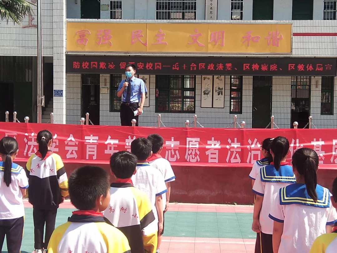 “你們知道什么是校園欺凌嗎?”“如果受到校園欺凌,我們該怎么辦呢?”……宣講現(xiàn)場,青年普法志愿者結(jié)合身邊發(fā)生的實際案例,向全體師生講解如何應(yīng)對校園欺凌,校園欺凌的危害,如何杜絕校園欺凌入手,教育學(xué)生面對校園欺凌該怎么做。與學(xué)生互動,指導(dǎo)學(xué)生遇到危險時如何自救和自我保護(hù),向?qū)W生發(fā)放法治宣傳手冊200余份,組織觀覽《中華人民共和國未成年人保護(hù)法》宣傳展板。